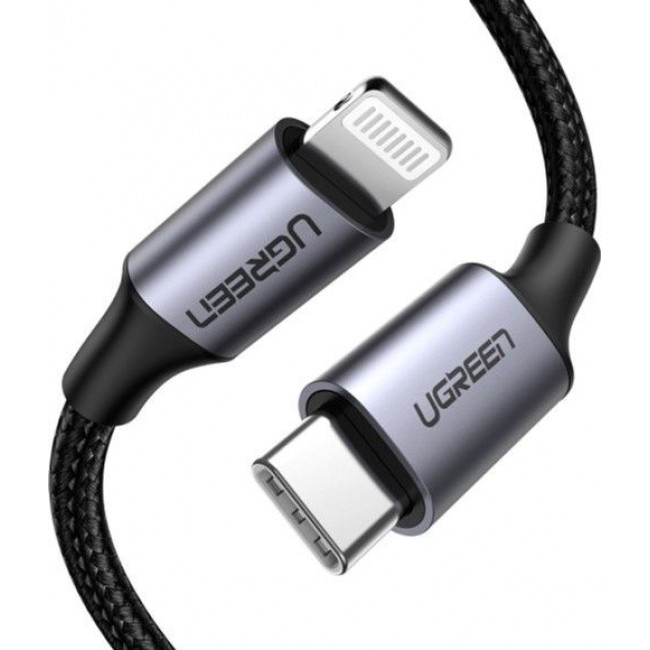 60760 Кабель UGREEN US304 Lightning - Type-C, цвет: черный, 1.5M (#184775~01)